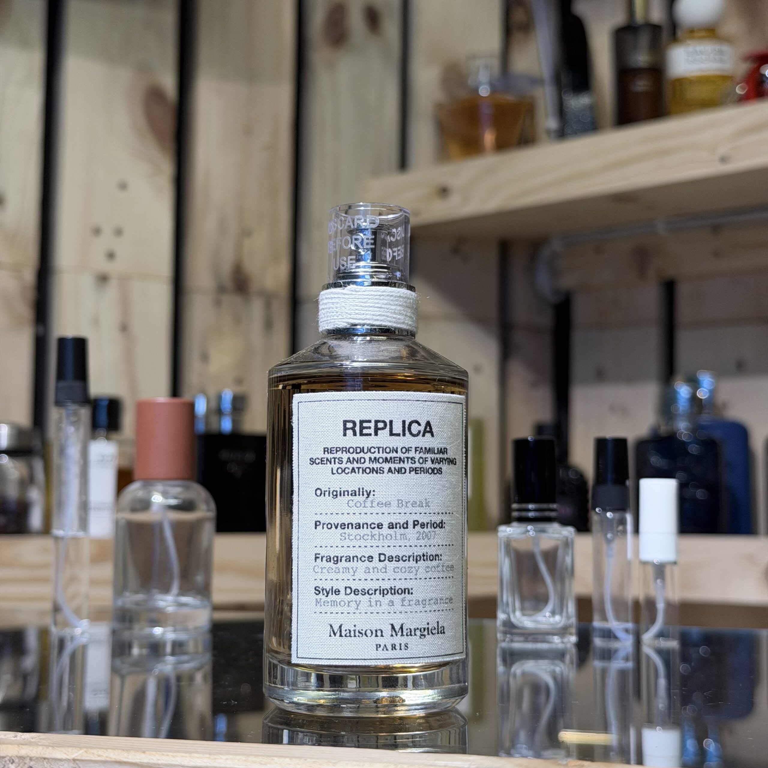 The fragrance opens with a soft blend of light citrus, creamy notes and gentle aromatics. This opening creates an immediate sense of warmth and calmness. In addition, subtle spice accents help enhance the coziness and build a welcoming atmosphere. As Replica coffee break develops, the heart reveals smooth coffee tones, creamy latte-like richness and delicate floral touches. Moreover, this middle phase brings depth while keeping the fragrance soft and easy to enjoy throughout the day. The coffee element remains gentle, making the scent wearable even for users who prefer lighter compositions.